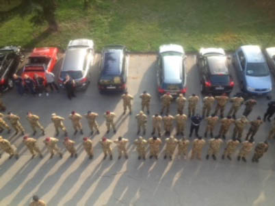 La pré fête est toujours l'occasion de récupérer l'indispensable omission, même les clés des chambres de la caserne un jour de « Jeune Genevois » ! Le succès d'une manifestation, c'est un travail d'équipe, d'une structure protocolée. Ce vendredi à l'aurore, le soleil bien orangé, filtrait les dernières vitres du stand lorsque les premiers organisateurs s'affairaient à pavoiser l'entrée du stand. La sono, les hymnes nationaux sur CD, les hampes, les drapeaux tout était prêt. Les troupes arrivaient par groupe, par affinité. Dans le stand, les indications étaient affichées, dans le stand 25 m. le programme sur chaque pas de tir et en italien. Donc, « les pamyrs » se sont les Cuffies, « caricare » c'est « charger ». La buvette « aperta », tout le monde avait compris ! A 09h00, l'alignement était ordonné sur 3 rangs.